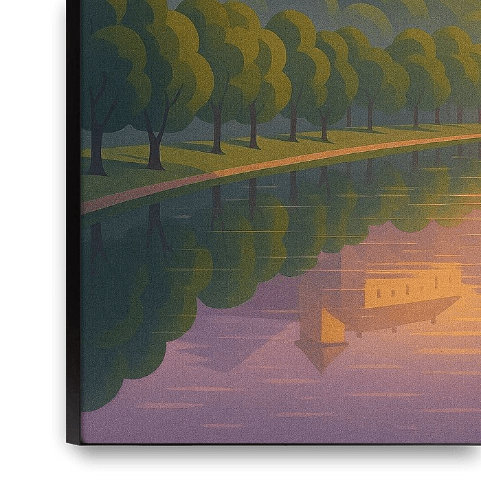 Your chosen art on canvas, stretched in an aluminum frame. Quick and easy to change for a fresh look and exactly as you want it.