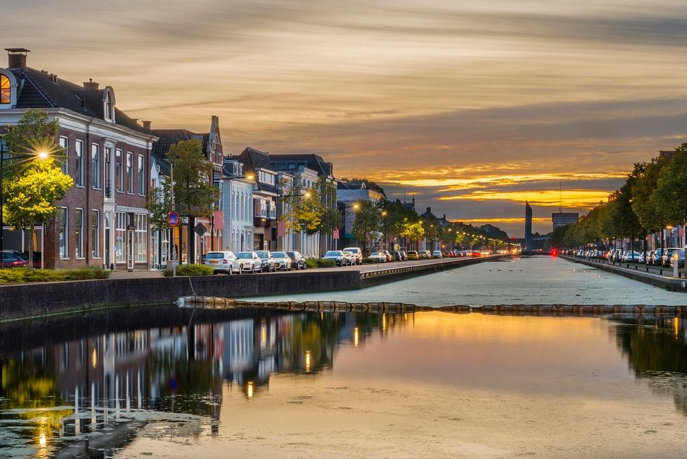 Cruise in Assen, Drenthe, the Netherlands with beautiful evening light.