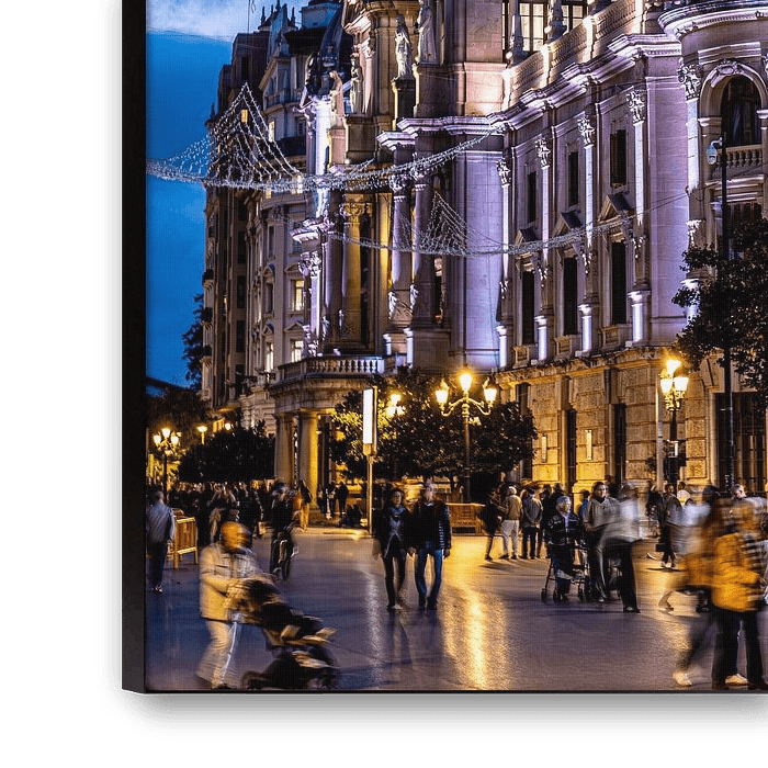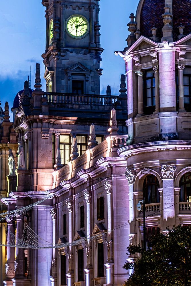 Buy the photo Valencia City Hall blue hour by Dieter Walther on canvas, ArtFrame, poster and wallpaper, printed on demand in high quality.