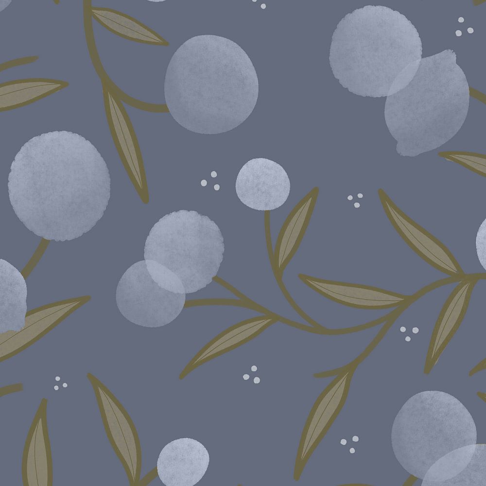 Here oranges alternate in blue colors between the green leaves. With the dark blue background, this print is a mood creator. From the bedroom, living room, kitchen to study.