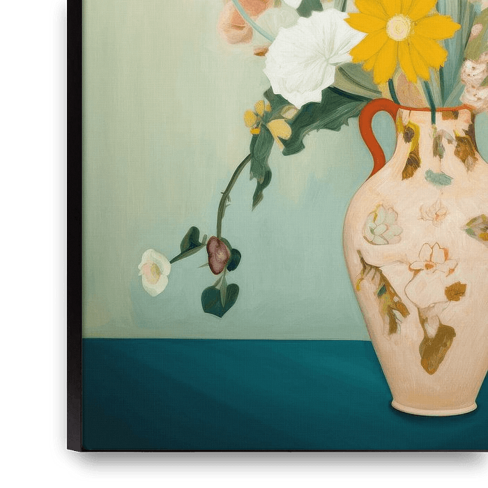 Vase with flowers in pastel colours, illustration. Field bouquet with wildflowers. This work fits perfectly into any interior. From romantic to modern: when you choose this work, you are assured of a real eye-catcher!