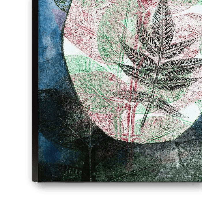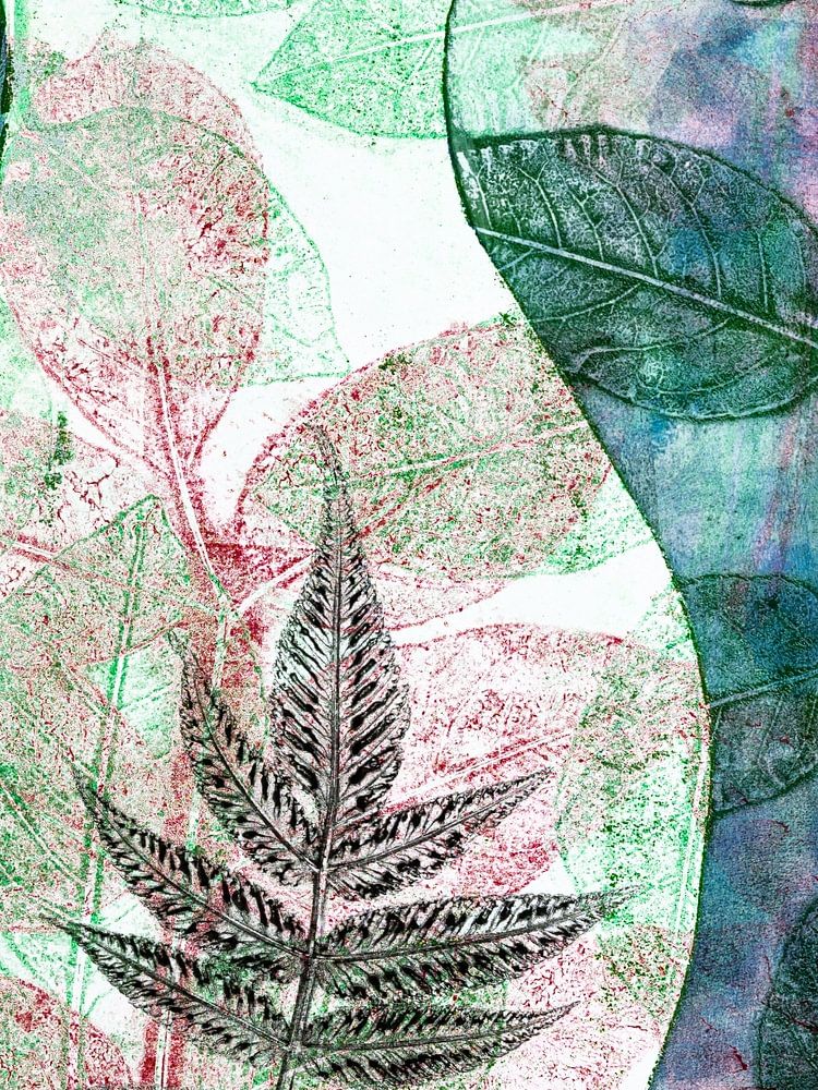 This botanical monotype or monoprint is made with a gel plate and acrylic paint. A unique handmade and one-off work, only 1 print can be made of your design. The graphic printing technique and the paper used create all kinds of textures and effects. In this work I picked flowers, plants, leaves and grasses and printed them in the paint. By printing several times on top of each other and using a template of a vase, this unique work is created. Because white has been left out, the work keeps its freshness. The background is exciting with dark green leaves, the vase stands out well. The color red is not dominant.