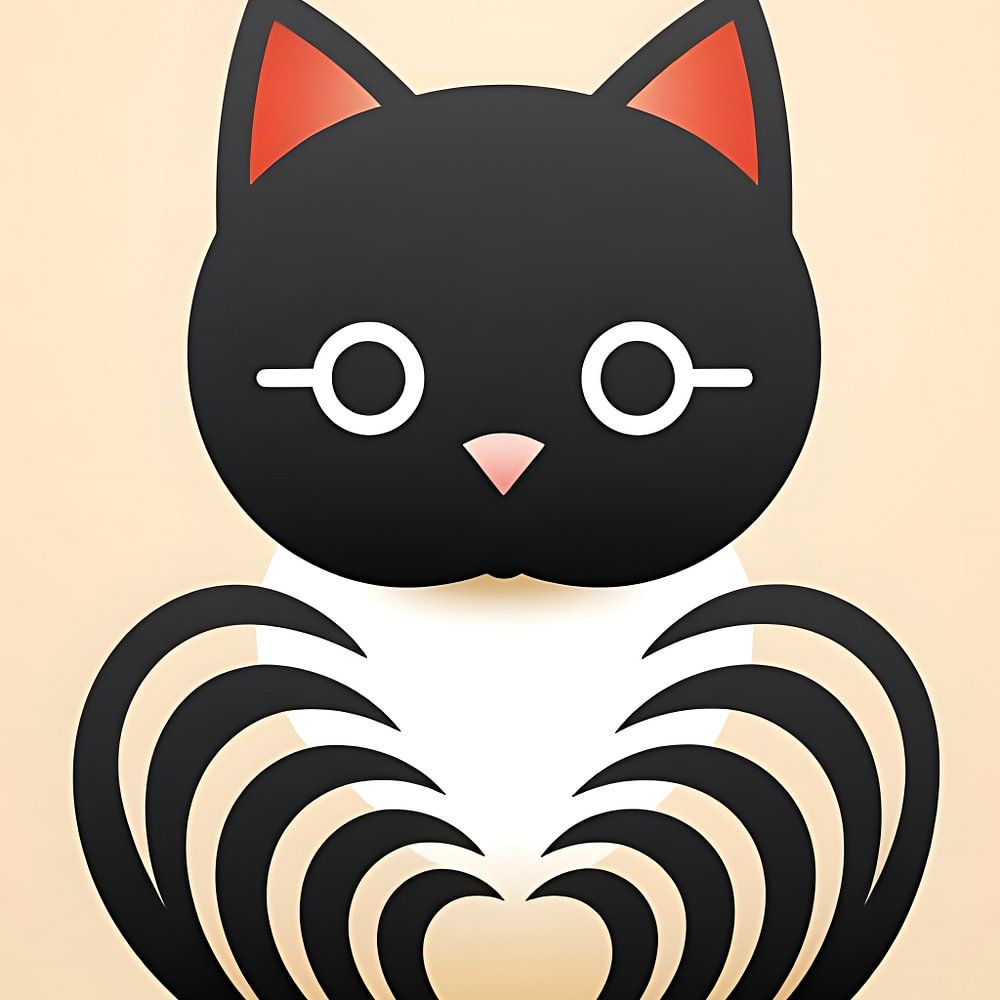 A graceful vector drawing of a cat full of charming details. Her soft eyes and gentle gaze radiate calm and contentment. The stylised lines capture the fluidity of her movements and the playful elegance of a typical domestic cat. A work of art that beautifully embodies the endearing beauty of cats.