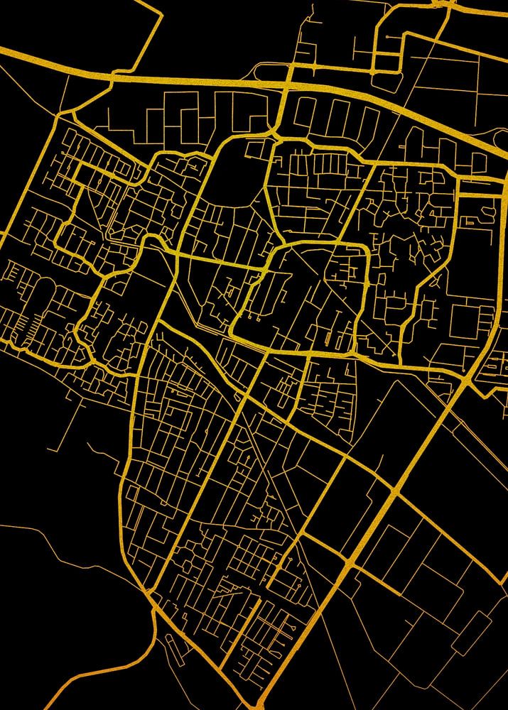Buy this landscape artwork Veenendaal City Map Modern Black Gold by Kenda Maruyama on canvas, ArtFrame, poster and wallpaper, printed on demand in high quality.