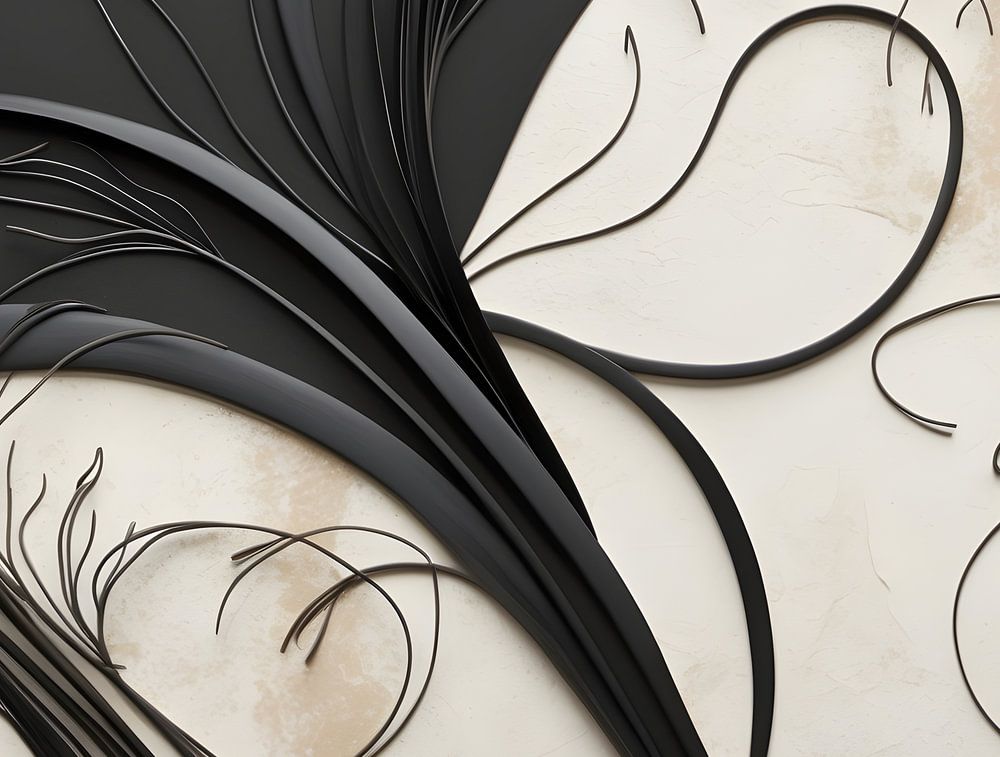 Discover the sophisticated elegance of Velvet Flow, a contemporary abstract artwork that captures nature's flowing lines and organic growth patterns. Delicate, lacy tendrils swirl in matte black and smoky grey tones over a subtly weathered, cream-coloured surface with stone-like texture. The result is a minimalist yet powerful play of movement, connection and endless grace.