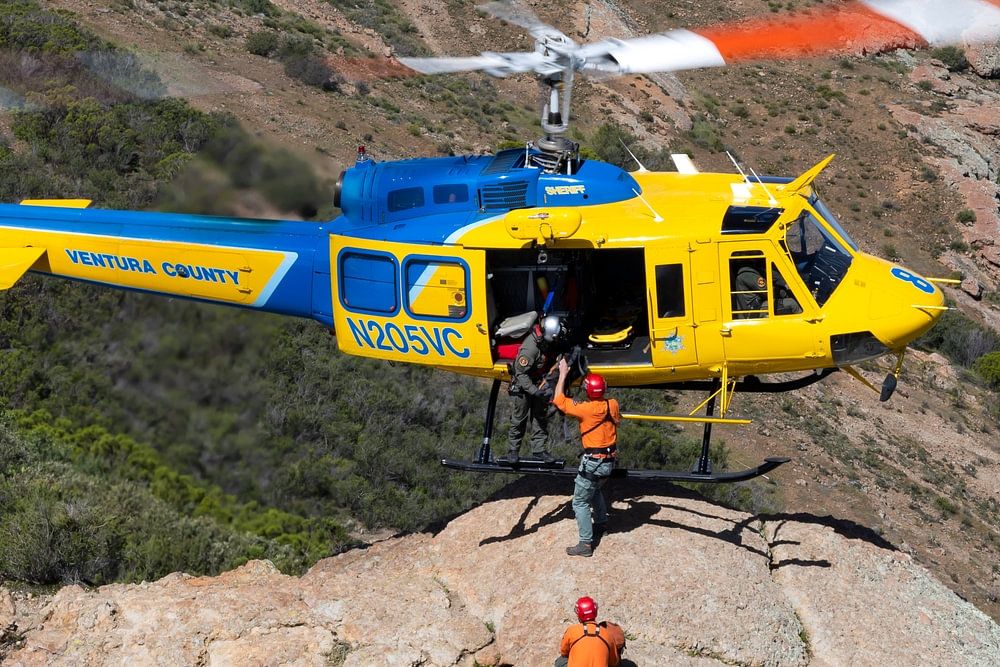 Ventura County Heuy picks up a rescue team from a mountain. California is a good region for finding operational Huey's.