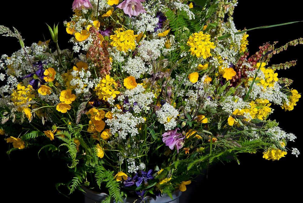 In spring, the roadsides of North Holland turn yellow, white, purple and green. Rapeseed, cow parsley, buttercups, sorrel and lots of grasses bloom lushly. Farmers have also sown pieces of their land to increase biodiversity. And you are free to pick, this bouquet of roadside flowers lends itself to the farmers vase. The black background stills this image. A beautiful bright yet peaceful photograph.