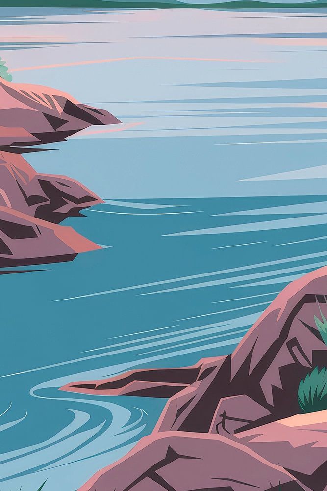 This harmonious landscape transports the viewer to the rolling hills and tranquil waters of Vermont, framed by delicate green foliage. The warm pastel colours of the sunset create a relaxed atmosphere that is ideal for a living room where family and friends can come together and enjoy the peaceful beauty.