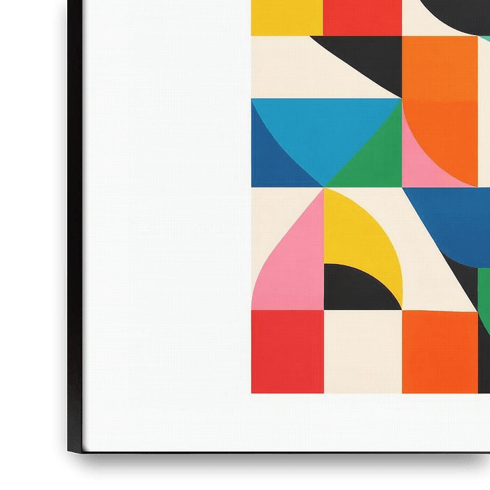 Modern abstract wall art featuring bold geometric shapes and vibrant colour blocks arranged in a striking vertical composition. High contrast tones and clean graphic forms create an eye-catching statement piece, perfect for contemporary, creative, and modern interiors.