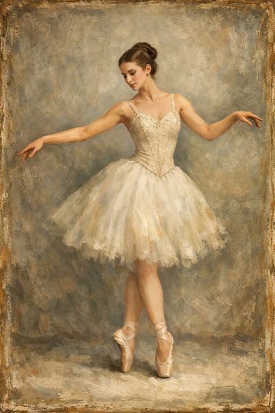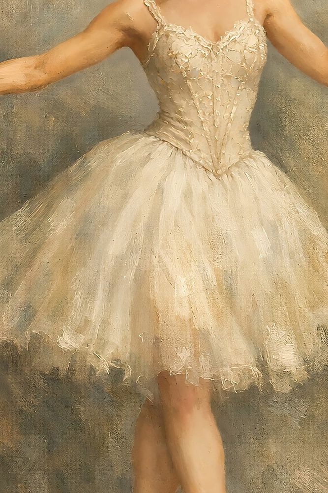 This painting focuses on the duality of ballet. Whilst the soft, layered white tutu and the dreamy background suggest a sense of weightlessness, the ballerina’s posture tells a different story. The title ‘Vertical Grounding’ refers to the extreme concentration and physical control required to maintain perfect balance on the very edge —…