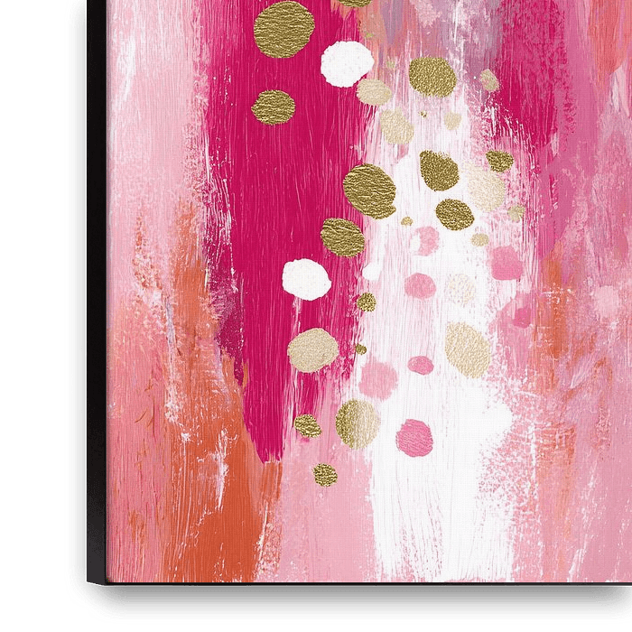 A powerful and elegant abstract painting with vertical movements in pink, peach and soft white, combined with playful dots in gold and white. This work brings together cheerfulness and sophistication, adding a modern, artistic touch to any space.