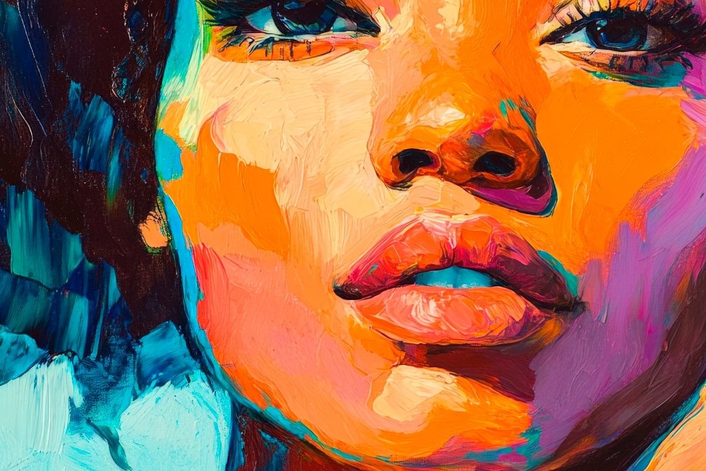 Vibrant colours dance on the canvas and create an energetic aura. The expressive eyes and powerful presence of the person depicted radiate self-confidence. This artwork adds an inspiring and dynamic accent to any room, especially a living room or creative workspace.