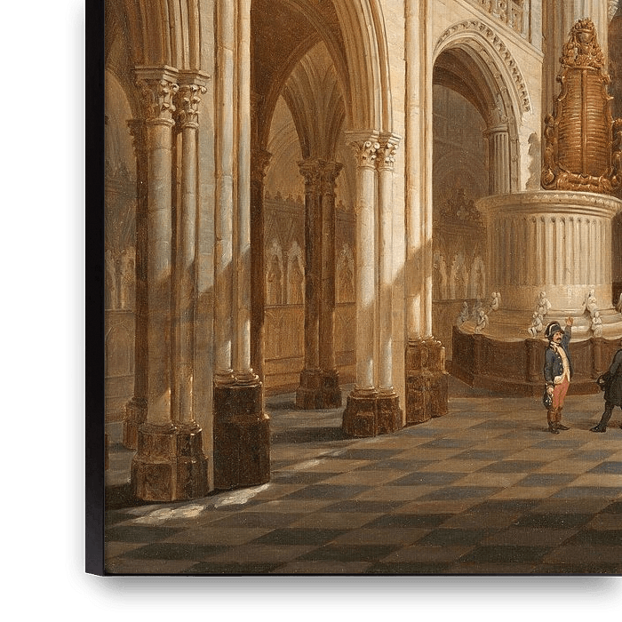 Victor-Jules Génisson (1805-1860) was a Belgian painter best known for his impressive architectural pieces and church interiors. He studied at the Royal Academy of Fine Arts in Antwerp, where he came under the influence of the neo-Gothic movement and developed a keen interest in perspective and light. Génisson travelled extensively, including to Italy and France, which strongly influenced his work. His paintings are characterised by accurate rendering of Gothic and Romanesque building elements, often with a mystical or sacred atmosphere. He managed to capture the monumentality of churches and cathedrals, while also paying attention to small human figures, which gave his works vibrancy. Génisson was a master at using light and shadow effects, evoking depth and spirituality. His work was appreciated in his time and is now part of collections in Belgian museums and churches.