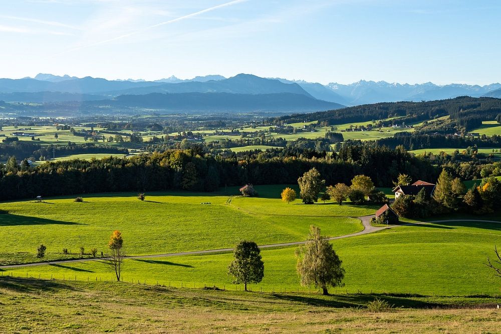 View from Mariaberg of the Grünten and the Allgäu Alps in autumn