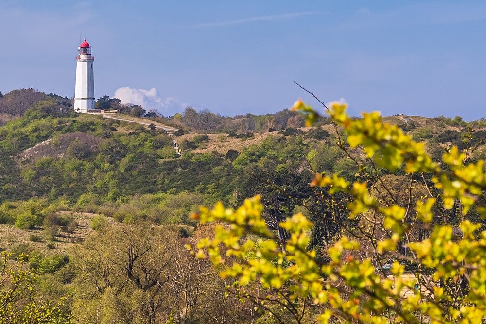 View from Swantiberg to the lighthouse Dornbusch on the island Hiddensee.