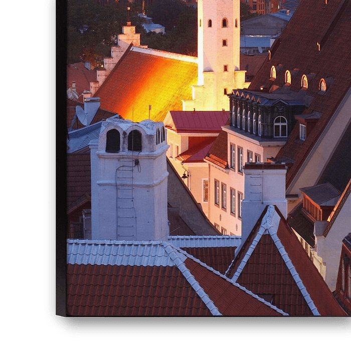 Buy the photo View from the Cathedral Hill to the Lower Town, Old Town with Holy Spirit Church at dusk, Tallinn, E by Torsten Krüger on canvas, ArtFrame, poster and wallpaper, printed on demand in high quality.