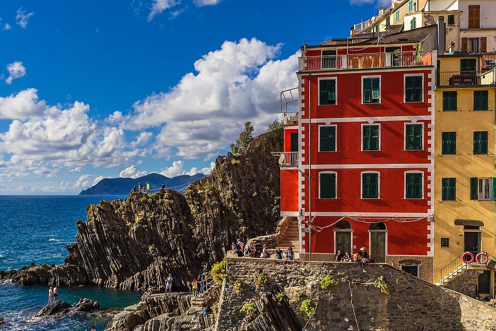 View of Riomaggiore on the Mediterranean coast in Italy.