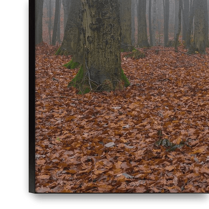 Buy the photo View of forest treen in fog on an misty autumn day by Alex Winter on canvas, ArtFrame, poster and wallpaper, printed on demand in high quality.