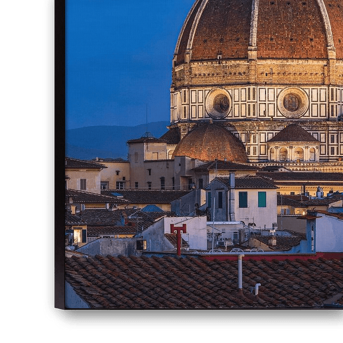 Buy the photo View of the Cathedral of Santa Maria del Fiore at Blue Hour by Rico Ködder on canvas, ArtFrame, poster and wallpaper, printed on demand in high quality.