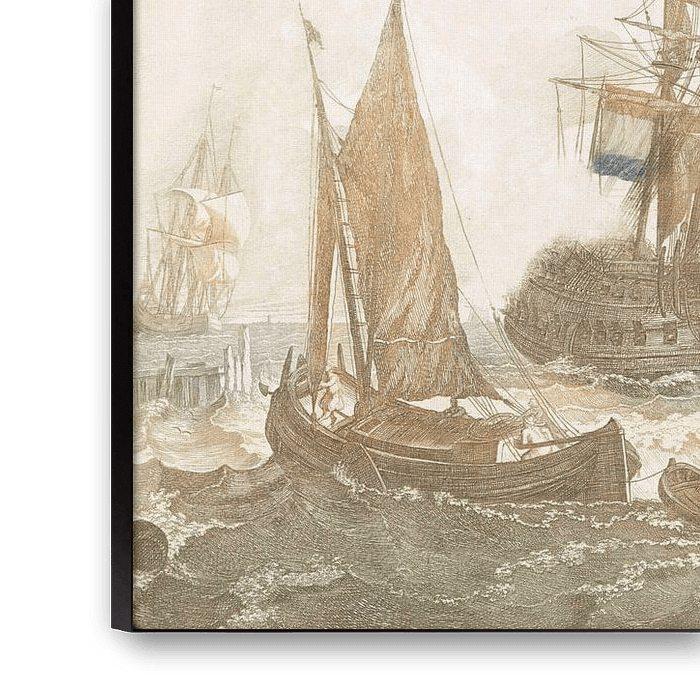 Buy View of the IJ with the East India Sea-warehouse and the Oosterkerk, Johan Teyler as a reproduction on canvas, ArtFrame, poster and wallpaper, printed on demand in high quality.