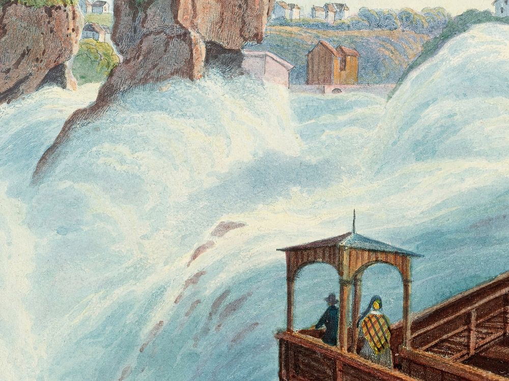 About "View of the Rhine Falls, taken by Fichetz, Johann Ludwig Bleuler"