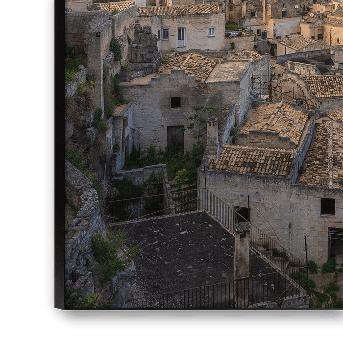 Buy the photo View of the Sassi of Matera at sunset. Basilicata, Italy by Stefano Orazzini on canvas, ArtFrame, poster and wallpaper, printed on demand in high quality.