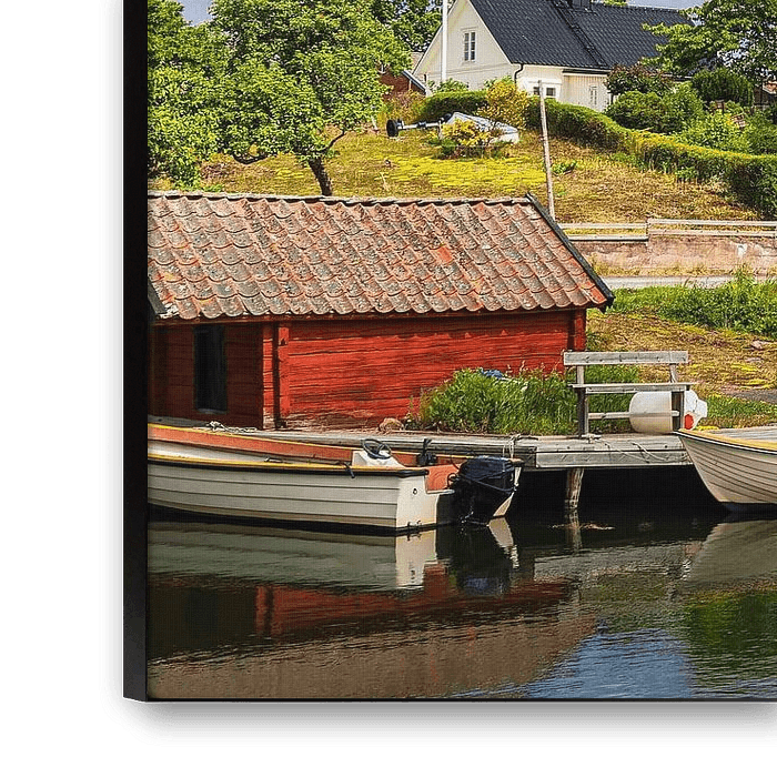 Buy the photo View of the village of Figeholm in Sweden with harbour and boats by Rico Ködder on canvas, ArtFrame, poster and wallpaper, printed on demand in high quality.