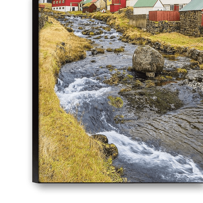 Buy this landscape artwork View of the village of Gjógv on the Faroe Island of Eysturoy by Rico Ködder on canvas, ArtFrame, poster and wallpaper, printed on demand in high quality.