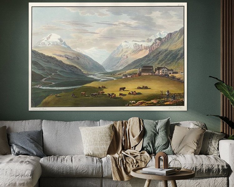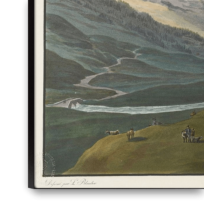 Vue du village Hinterrhein, et des premiérs pont sur le Rhein interieur; prise vers le glacier de Rheinwald, Johann Ludwig Bleuler Johann Ludwig Bleuler, sometimes called Louis was a Swiss painter, landscape artist and publisher.