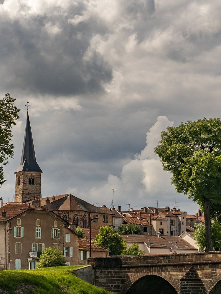 The village of Mirecourt with the river and a bridge.