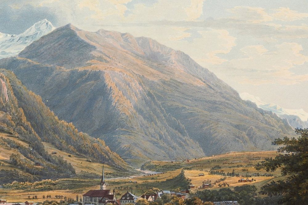 View of the village of Trons, historical information about the Confederation of the Canton of Grisons, Johann Ludwig Bleuler from the old master collection