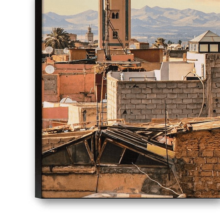 Buy the photo View over old town of Marrakech to High Atlas Mountains in Morocco by Dieter Walther on canvas, ArtFrame, poster and wallpaper, printed on demand in high quality.