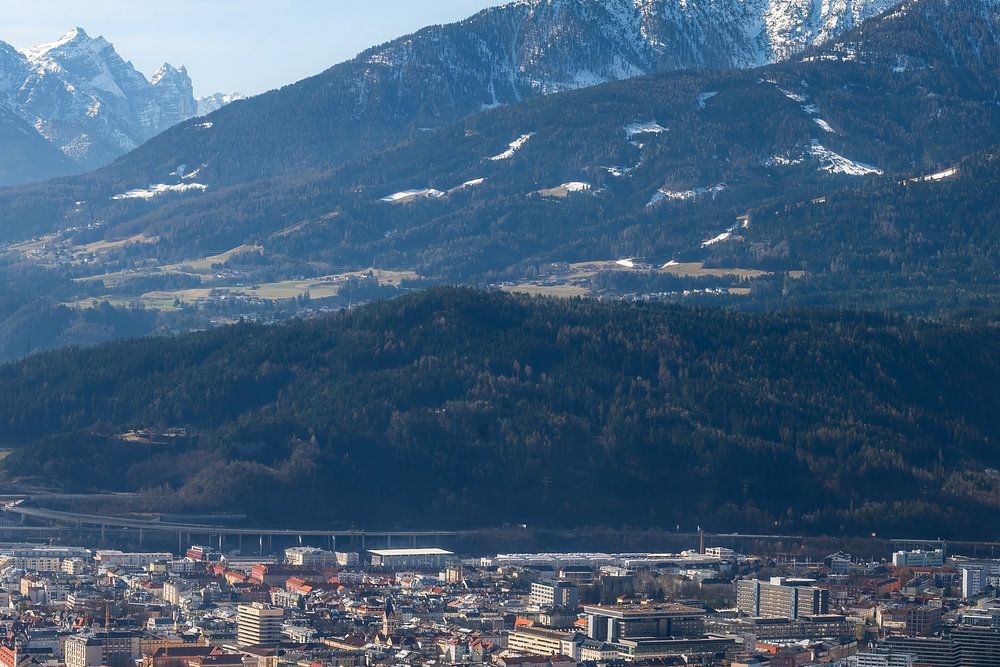 Buy this landscape artwork View over the city of Innsbruck by ManfredFotos on canvas, ArtFrame, poster and wallpaper, printed on demand in high quality.