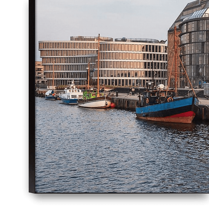Buy the photo View to modern buildings in Rostock, Germany by Rico Ködder on canvas, ArtFrame, poster and wallpaper, printed on demand in high quality.