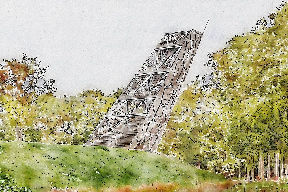 Digital watercolour of the Pompejus watchtower at Fort de Roovere in Halsteren (Brabant) on the Brabantse Wal.