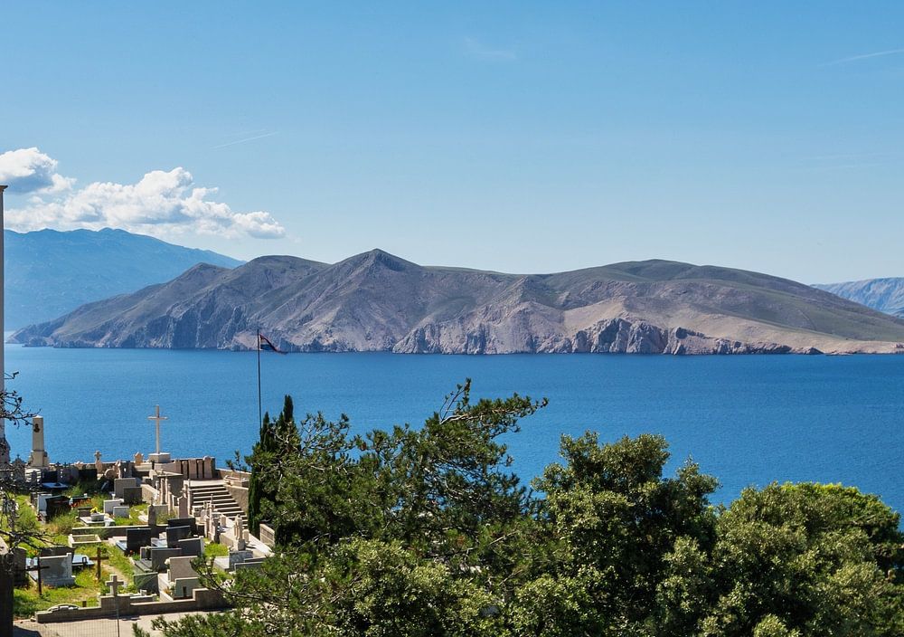 At the Baška cemetery (on the island of Krk), you have a great view of the bay and the islands surrounding it. The photo was taken on a sun-drenched day making the sky almost as blue as the sea. Seeing the photo would make me want to go back to that beautiful serene place tomorrow.