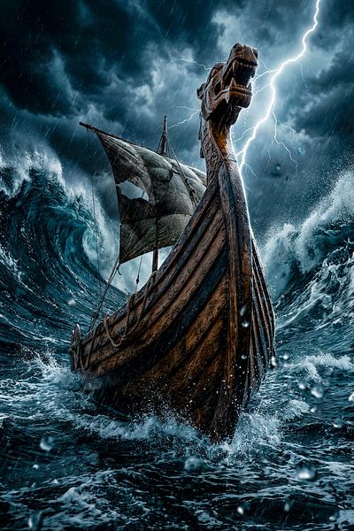 Buy this digital art artwork Vikings' conquering waves by Mike Maes as a reproduction on canvas, ArtFrame, poster and wallpaper, printed on demand in high quality.