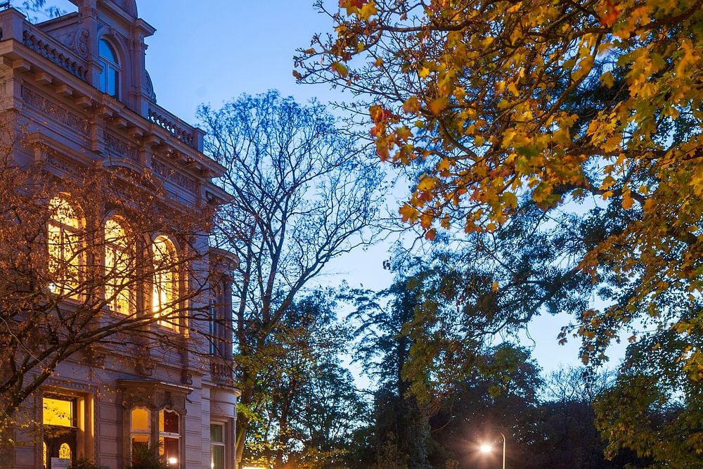 Villa Ichon at dusk in autumn, Bremen, Germany, Europe
