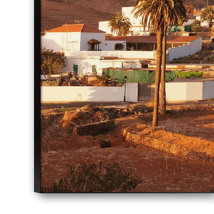 Buy this landscape artwork Village at sunset, Fuerteventura, Canary Islands, Spain by Markus Lange on canvas, ArtFrame, poster and wallpaper, printed on demand in high quality.