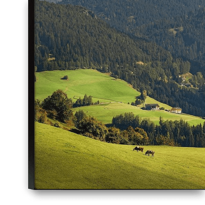 Buy this landscape artwork Villnösstal view and the Odle mountains, Dolomites by Stefano Orazzini on canvas, ArtFrame, poster and wallpaper, printed on demand in high quality.