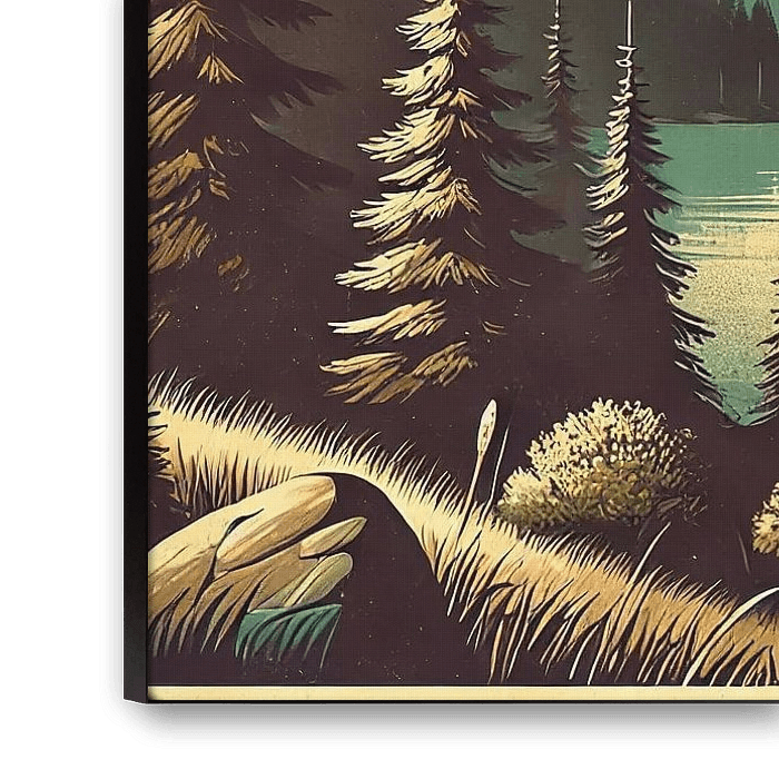This piece is my nod to mid century national park posters, the promise of crisp morning air, quiet paddles, and the hush that falls over a valley at first light. The atmosphere aims for serenity and slow breath, an invitation to pause before the day begins.