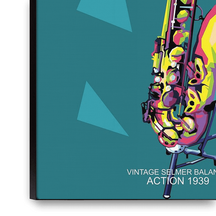 Buy this abstract artwork Vintage Selmer Balanced Action 1939 Saxophone in incredible pop art poster by miru arts on canvas, ArtFrame, poster and wallpaper, printed on demand in high quality.