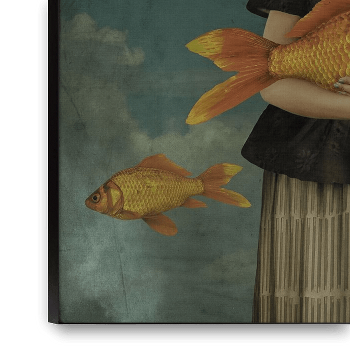Vintage Beauty with Goldfish & Orange Rose, Blue Cloudy Sky