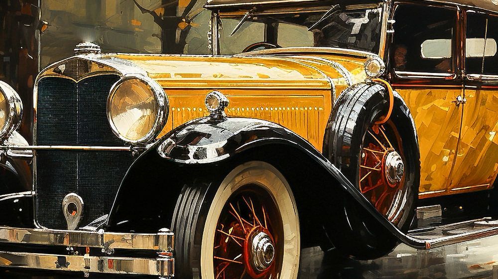 Buy this painting Vintage cars from the 1920s on the road by Animaflora PicsStock as a reproduction on canvas, ArtFrame, poster and wallpaper, printed on demand in high quality.