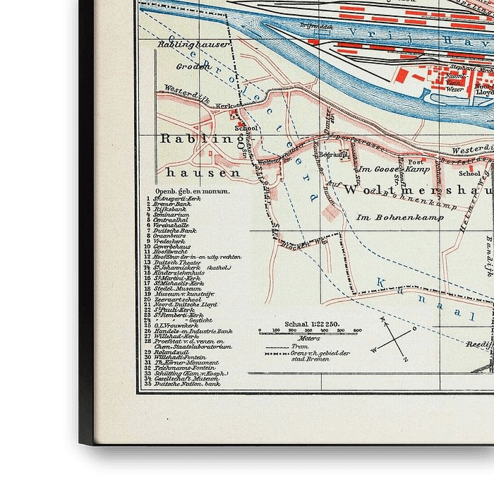 Buy this illustration Vintage map Bremen ca. 1900 by Studio Wunderkammer on canvas, ArtFrame, poster and wallpaper, printed on demand in high quality.