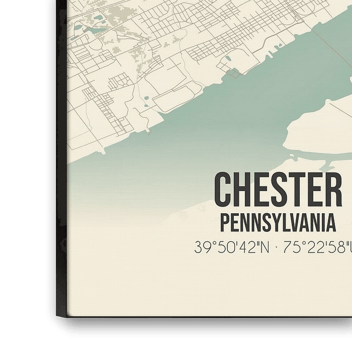 Nostalgia and adventure go hand in hand with this vintage map of Chester, Pennsylvania. The map takes you on a journey through time and introduces you to the versatility of this charming place, located in the United States.