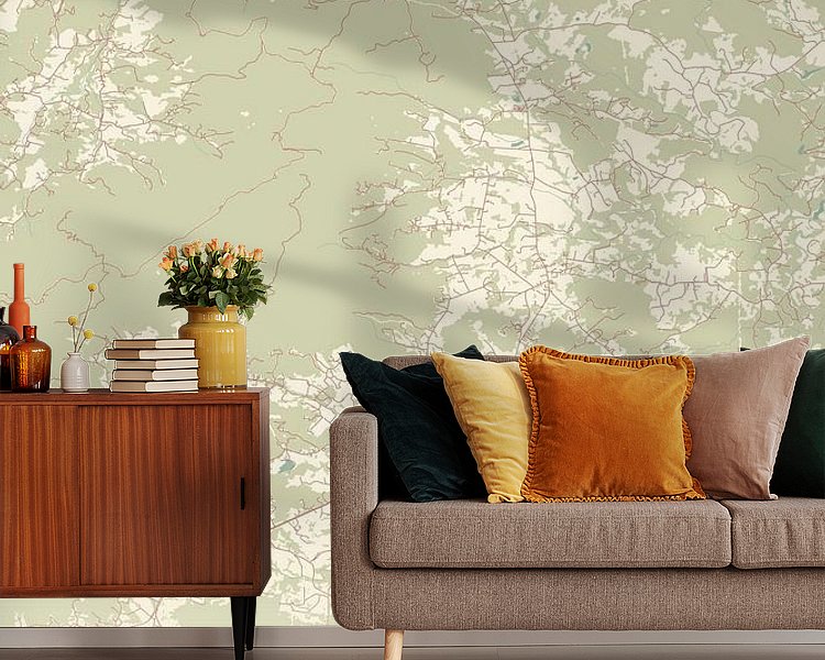 The map is a real eye-catcher in your home, perfect for the lover of vintage decoration. Forests, roads, lakes, rivers and streams are illustrated in colourful accents, leaving you amazed by the splendour and elegance of this place.