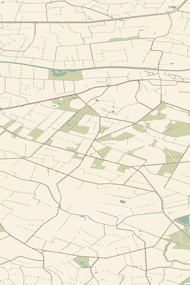 Retro map of Haarlo, located in the Achterhoek region, in the municipality of Berkelland, Gelderland province. The map shows public roads, watercourses (lakes, streams and ditches) and forests in and around Haarlo. In addition, the map contains the coordinates of Haarlo.