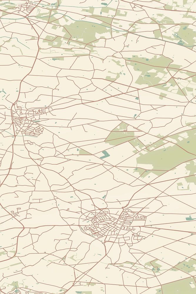 Retro map of Hengelo (Gld), located in the Achterhoek, in the municipality of Bronckhorst, province of Gelderland. The map shows public roads, watercourses (lakes, streams and ditches) and forests in and around Hengelo (Gld). In addition, the map contains the coordinates of Hengelo (Gld).