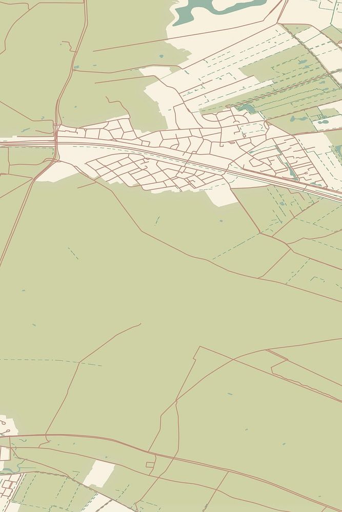 Retro map of Maarn, located in the municipality of Utrechtse Heuvelrug, province of Utrecht. The map shows public roads, watercourses (lakes, streams and ditches) and forests in and around Maarn. In addition, the map contains the coordinates of Maarn.